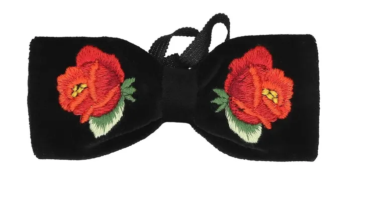 Mucha łowicka to niezwykły dodatek, który łączy tradycję ludowego haftu z eleganckim stylem. Wykonana z aksamitnego materiału, ozdobiona ręcznie haftowanymi wzorami łowickimi, stanowi idealne uzupełnienie zarówno klasycznych, jak i folkowych stylizacji.Dlaczego warto wybrać muchę łowicką?